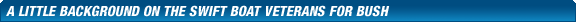Salon.com: "How Low Will the Swift Boat Veterans Sink?" A private detective retained by 'Swift Boat Veterans for Truth'-- the Texas-based group seeking to discredit John Kerry's military record -- is contacting veterans who may have information about the incidents that led to Kerry's Vietnam decorations. According to a former Kerry crew member, several of the Massachusetts senator's old Navy comrades have refused to talk with the detective, a former FBI agent named Thomas Rupprath -- and some have complained that the detective tried to put damaging words in their mouths. Rupprath's efforts are clearly intended to discredit Kerry's military record, which should surprise nobody familiar with the 'Swift Boat' group. Its leaders are conservative Republicans embittered over Kerry's later antiwar activism." [Salon.com, 7/13/04]